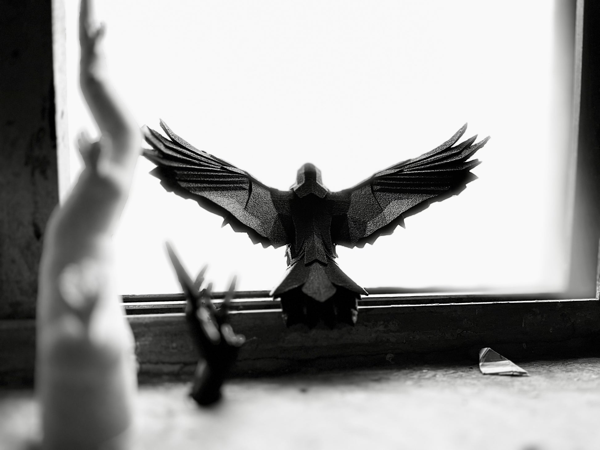 This Crow sculpture features a low poly design rendered in black, 3D printed with precision to capture its geometric form. Its minimalist, faceted style highlights the beauty of angular simplicity, making it a striking decorative piece for modern spaces. Durable and lightweight, this 3D printed model offers both aesthetic appeal and a conversation starter for enthusiasts of digital art and contemporary design.